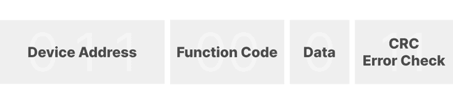 Each Modbus message has the same structure, consisting of four basic elements which are present in each message. The sequence and order of these elements are the same for all messages, subsequently allowing for easy content parse. The controller always initiates the conversation. When a message is sent, the peripheral interprets the message and responds to it. Modbus sends functions which communicate read and write instructions to the peripheral’s internal memory registers to configure, monitor and control the peripheral’s inputs and outputs. Modbus devices typically include a register map outlining where the configuration input and output data can be written and read. You should always refer peripheral’s register map of your device to gain a better understanding of its overall operation.