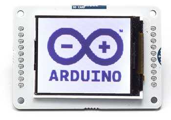 The Arduino TFT screen is a backlit TFT LCD screen with a micro SD card slot in the back. You can draw text, images, and shapes to the screen with the TFT library.
