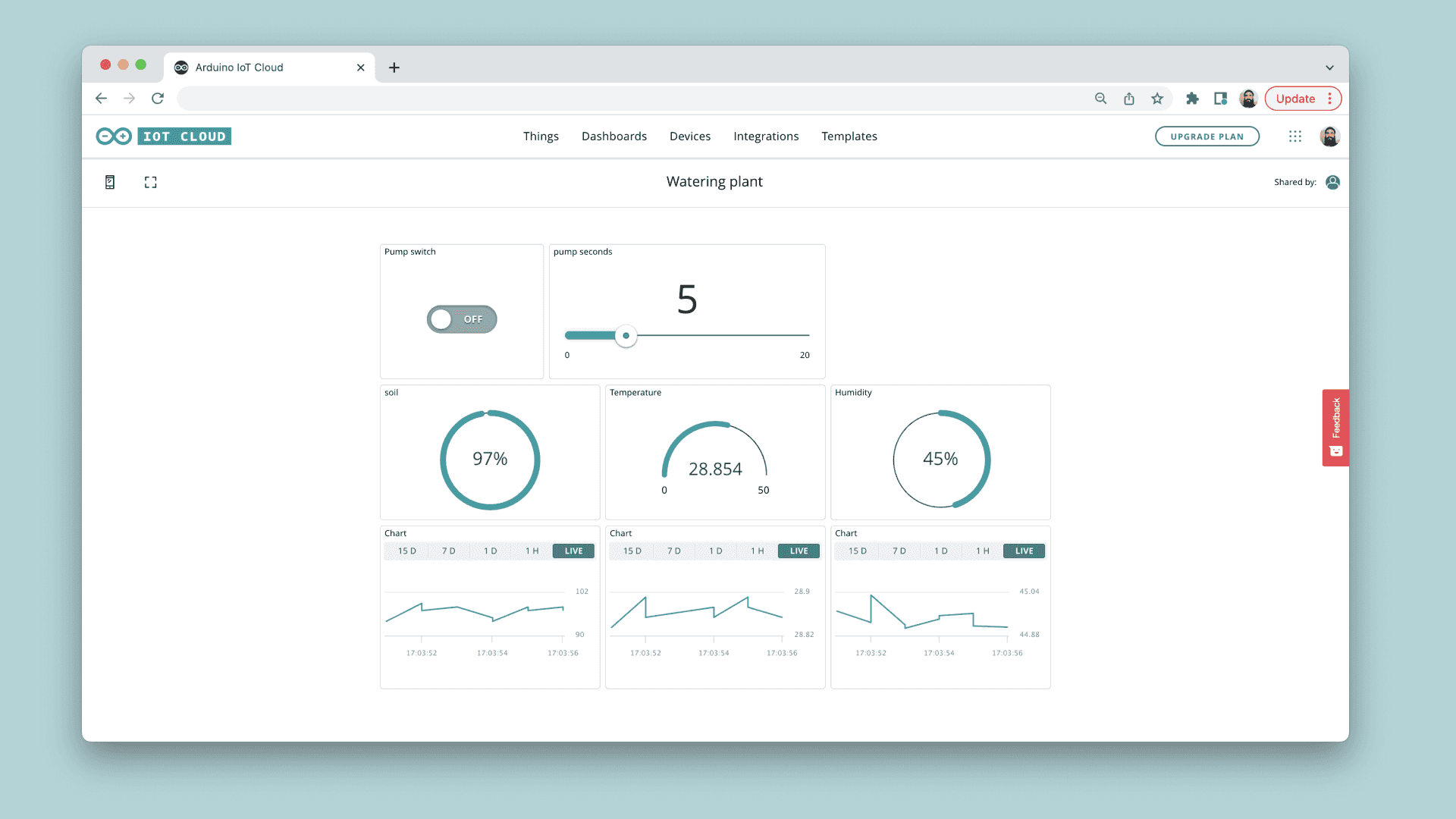 With a smart garden setup, you can easily monitor the environment of your plant, and water it remotely. In this tutorial, we have gone through the basic elements needed for achieving just that: but there are more things you can do. Below is a list of some fun ideas that you can do with your plant: