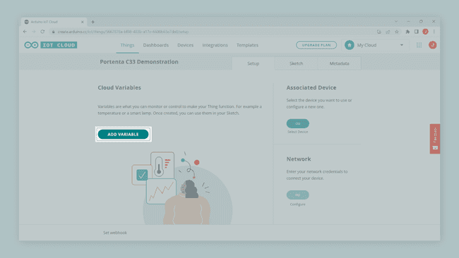 The project is now ready to add some variables to your "Thing"; navigate into Cloud Variables and click the ADD VARIABLE button.
