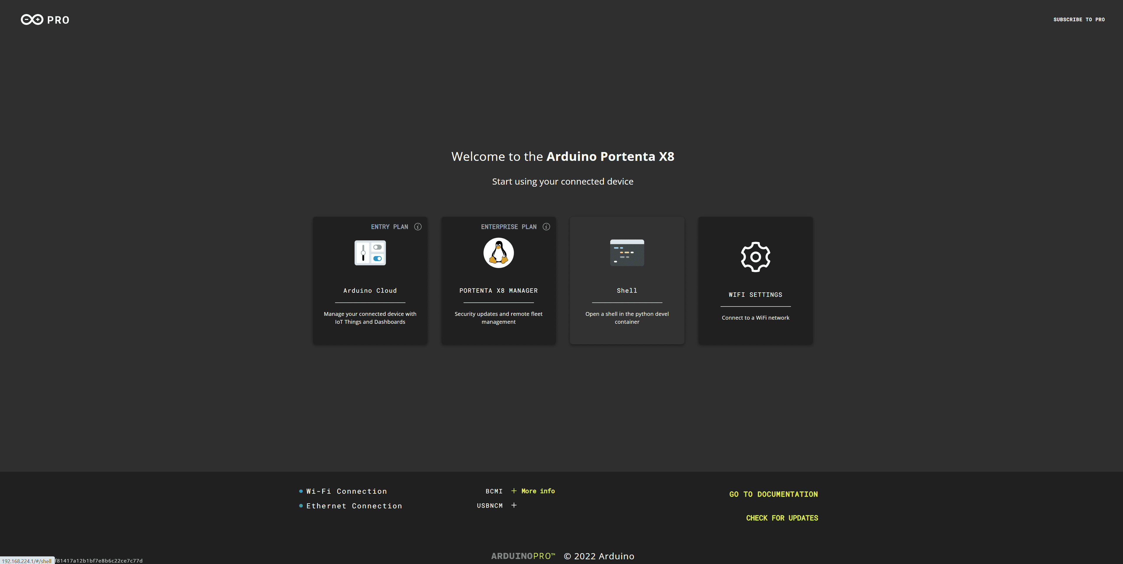 Click here to learn more about Arduino Cloud for business and the Portenta X8 Board Manager add-on. Otherwise, check the dedicated section of this user manual to start working with Portenta X8 Manager.
